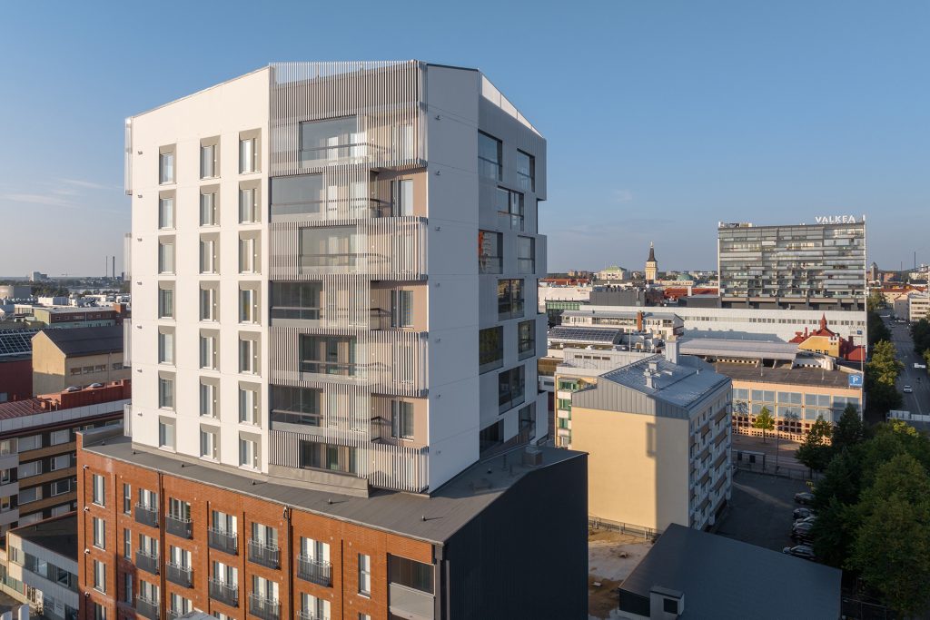 Korkeatasoinen uudisrakennus Oulun keskustaan. Tiiviiseen kaupunkirakenteeseen suunniteiltu ja toteutettu laadukas kokonaisuus. Kohteen rakennussuunnittelija Tuija Patana, toteutettu Arkkitehtitoimisto Kanttia 2 Oy palveluksessa.